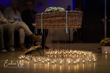 De dag van het afscheid was even hartverscheurend als hartverwarmend. De zaal was gevuld met familie en vrienden, allemaal gekomen om hun steun te betuigen en Luna te eren. Luna lag in een prachtig mandje. Tijdens het afscheid staken alle aanwezigen een kaarsje aan, zodat Luna omringd werd door lichtjes die als een symbolische sterrenhemel om haar heen straalden. Er werden verhalen gedeeld - herinneringen aan haar veel te korte leven en de impact die ze had gemaakt. Muziek klonk – zorgvuldig uitgekozen liedjes die perfect weergaven hoe geliefd ze was.
